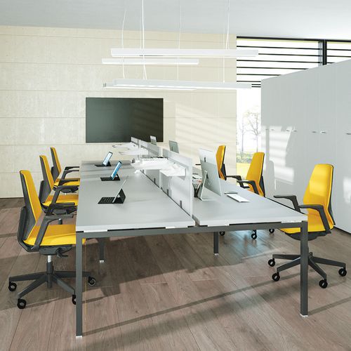 O tampo em melamina e o rebordo em ABS antichoque asseguram uma grande durabilidade.