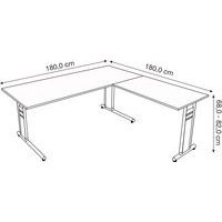 Secretária reta regulável com canto Form 4, Tipo de base: Em L, Largura total: 180 cm