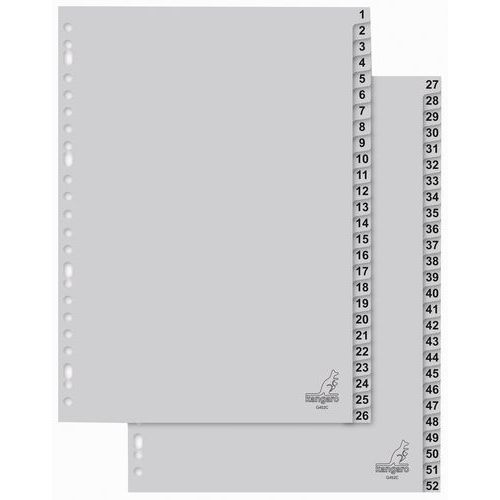 Separador com índice numérico eco, N.º de divisões: 52, P/ formato: 210 x 297 mm (A4)