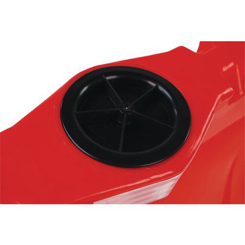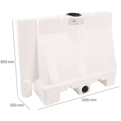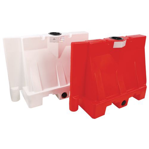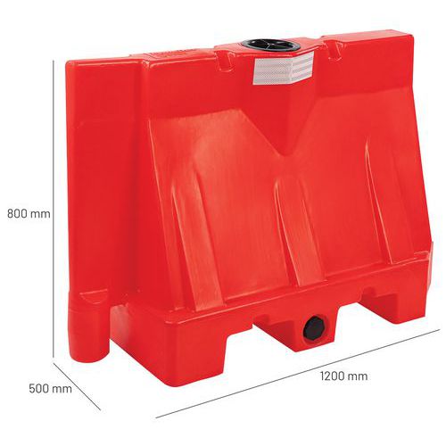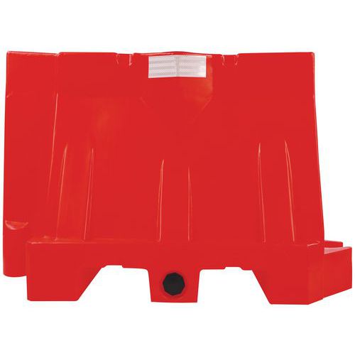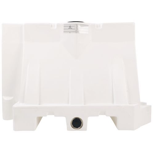 Separador monobloco impermeável. Fabrico por rotomoldagem. Faixa refletora em cada lado para maior visibilidade. Interconetável, permite alcançar um ângulo de 45 °. A colocação de lastro é efetuada com água ou areia.