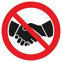 Painel de proibição para cumprimento absoluto das regras estabelecidas em situações de pandemia. Formato, cor, conceção do painel e símbolos em conformidade com as normas. Painel de sinalização rígido fabricado em poliestireno antichoque (PS) ultrarresistente.