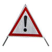 Cone dobrável resistente a diversas aberturas e fechos. Demarcação diurna com 2 faixas laranja fluorescente. Demarcação noturna com faixas refletoras de alta visibilidade. Demarcação com lanterna para um sinal intermitente.