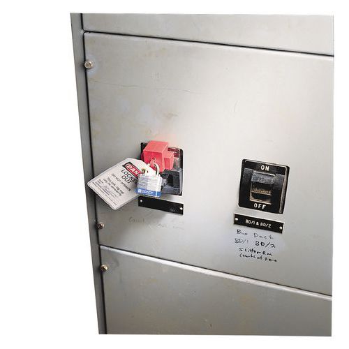 | Nome do artigo | Sistema de bloqueio de disjuntor – grande formato – Brady, Cores: Vermelho, Altura: 63.50 mm |
