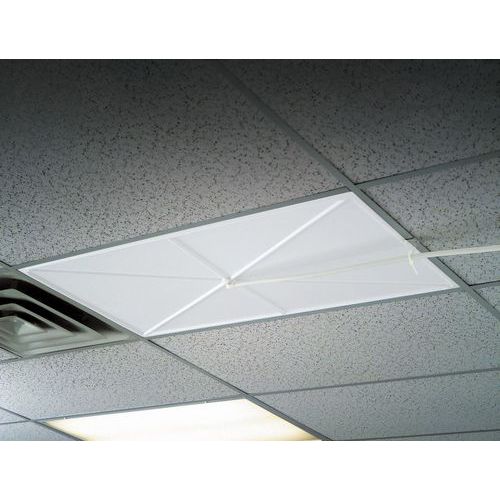 Retire os ladrilhos danificados e substitua-os por um painel de desvio de fugas para evacuar os líquidos. Minimiza os pisos molhados, os danos nos equipamentos e as perturbações dos trabalhadores. Recolhe as fugas e gotas e evacua-as para um dreno ou reservatório de armazenamento, graças ao tubo fornecido. Inclui um tubo de escoamento e abraçadeiras para fixar o tubo às grelhas do teto. Taxa de fluxo de 3,8 litros por minuto com o tubo fornecido.