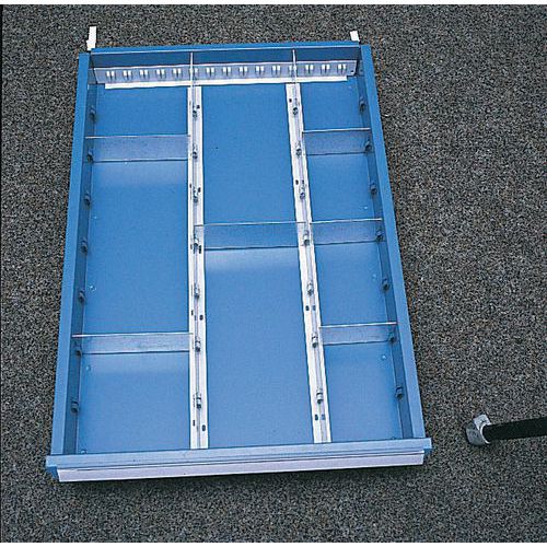 Solução de arrumação para gaveta Modul - 2 divisórias longitudinais e 6 divisórias transversais.