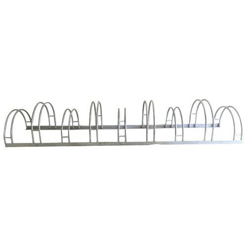 Suporte compatível com bicicletas clássicas ou BTT. Amplo espaço entre bicicletas, sem perigo de riscos. Boa resistência às intempéries. Necessidade de fixação ao solo. Largura máxima da roda: 53 mm. Espaço entre as rodas: 200 mm. Acabamento : Galvanizado Garantia do cliente : 10 anos