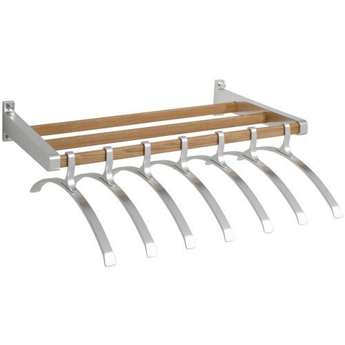 Suporte de cabides de parede em alumínio anodizado com um acabamento bonito com porta-cabides. Elementos estruturais e varões resistentes e duradouros. Composto por 3 varões paralelos com ganchos para cabides.