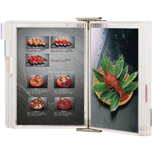 Kit de parede antimicrobiano com pivot para apresentação higiénica de documentos. Bolsa com produto orgânico natural, os iões de prata, que eliminam os germes e as bactérias. Suporte de parede com 4 bloqueios para fixação das bolsas e 5 separadores para indexação. Com 10 bolsas giratórias em PVC Sterifold antimicrobianas com pinos metálicos.