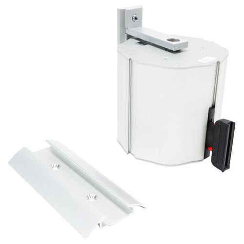 Caixa com correia para fixação na parede. Orientável para delimitação em todas as direções. Travão centrífugo integrado para evitar o enrolamento demasiado rápido da correia. Enrolamento travado em caso de afrouxamento acidental. Produto adequado para utilização em espaços exteriores.