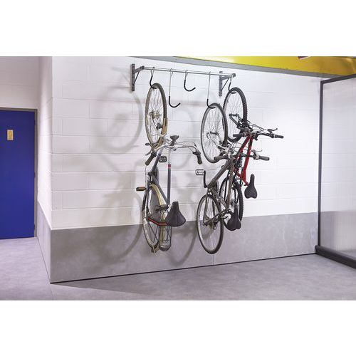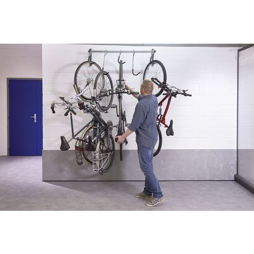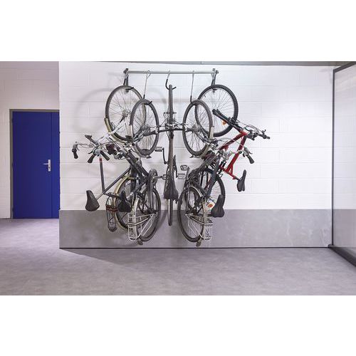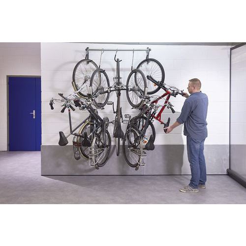 Suporte de parede deslizante para bicicletas – Mottez, Comprimento total: 119 cm, N.º de lugares: 5