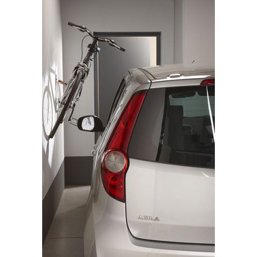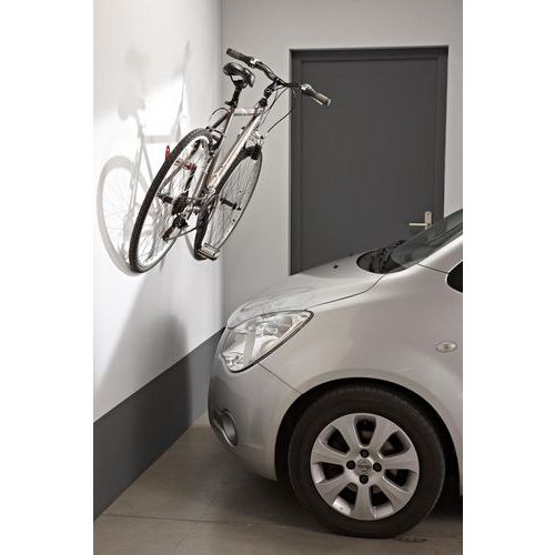 - A bicicleta fica fixa na parede, permitindo poupar espaço.