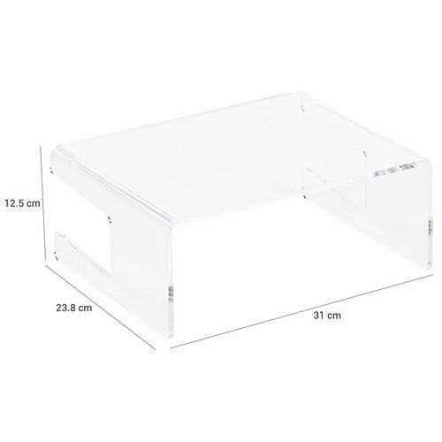 | Nome do artigo | Suporte ergonómico em acrílico para ecrã, Carga máx.: 8 kg, Cores: Transparente, Altura total: 12.5 cm |