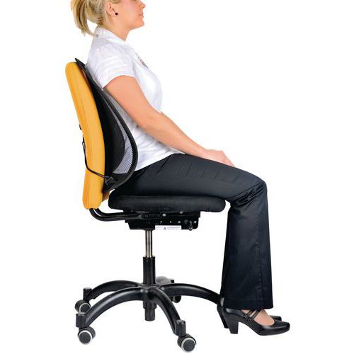 Suporte lombar ergonómico que favorece a melhoria da postura.