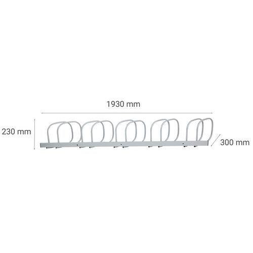Suporte para bicicletas com acabamento antiferrugem. Largura máxima da roda: 60 mm. Espaço entre as rodas: 328 mm. Garantia do cliente : 10 anos Acabamento : Galvanizado