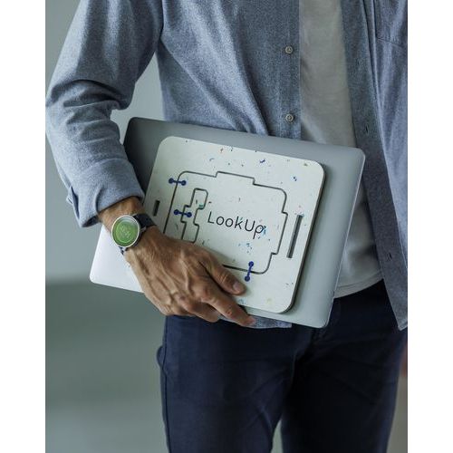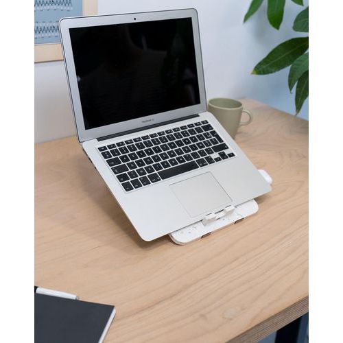 Suporte para computador LPVSO13 LookUp – LookUp. Melhora naturalmente a sua postura e o seu ambiente de trabalho. Ajuda a reduzir as tensões musculares no escritório e em casa. Um design integrado e leve, facilmente transportável. Compatível com o seu PC e MacBook. Pode ser utilizado com e sem teclado separado. Adapta-se imediatamente à sua utilização, graças à possibilidade de inclinação dupla. Calços antiderrapantes em cortiça. Carga máxima: 5 kg.