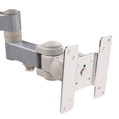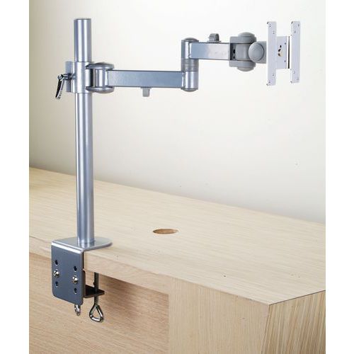 | Nome do artigo | Suporte para ecrã ajustável em altura, Carga máx.: 13 kg, Tipo de fixações: Alicate C, Cores: Prata |