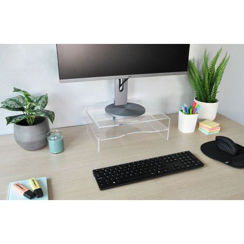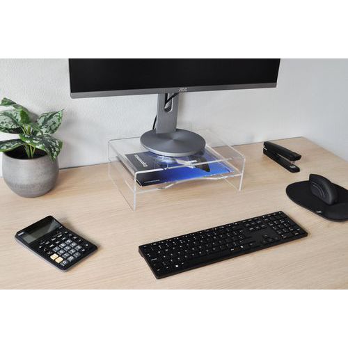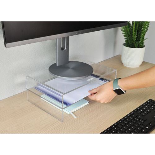 | Nome do artigo | Suporte para monitor e ecrã em acrílico transparente – Desq, Carga máx.: 15 kg, Altura regulável mín.: 12 cm |