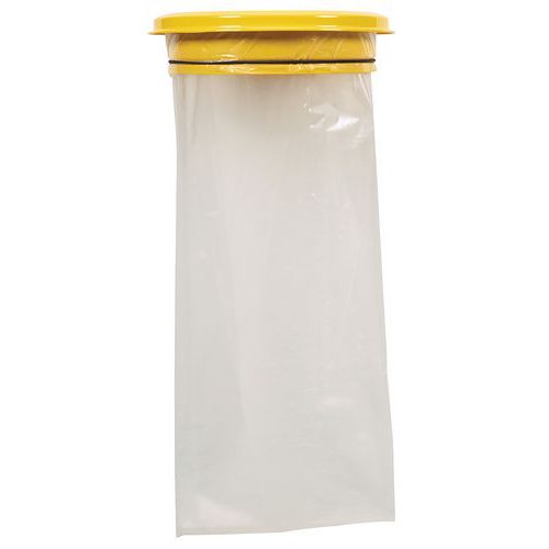 Suporte resistente à corrosão devido ao material. Fixação do saco através de cintura elástica. Fácil instalação e manutenção. Para montagem em coluna, os suportes são vendidos com as fixações. A coluna não deve ter mais de 5 cm de diâmetro. Tampa com 410 mm de diâmetro.