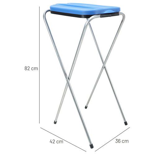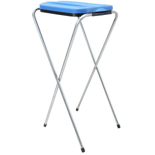 Suporte para saco com estrutura metálica dobrável e tampa em plástico. Disposição de acordo com as suas necessidades. Prático em todos os ambientes, quer se trate de eventos ou das suas instalações. Compacto e robusto, este suporte para sacos de lixo é a solução económica para recolher o máximo de resíduos possível no seu local de trabalho. Composto por tubos metálicos, este modelo combina robustez e estabilidade.