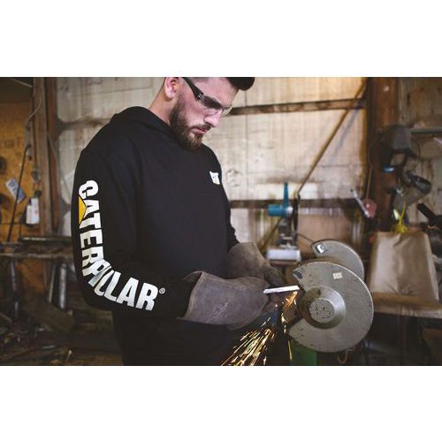 - Logótipo CAT estampado a branco do lado esquerdo do peito e na manga direita