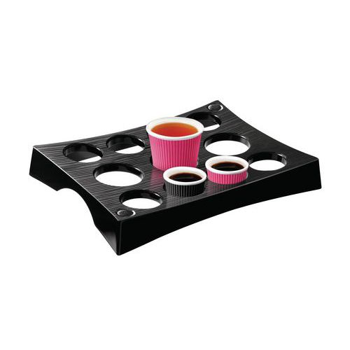 | Nome do artigo | Tabuleiro porta-copos, Capacidade (n.º de copos): 11, Material: PVC, N.º de peças: 1, Cores: Preto |