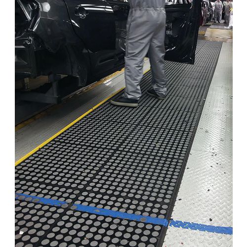 O tapete antifadiga Matlast isola do frio e absorve as vibrações das máquinas circundantes.