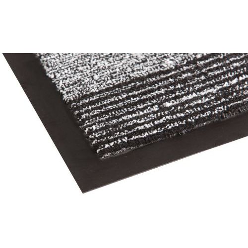 Tapete de entrada em microfibra extremamente absorvente. Antiderrapante graças à sua base sólida em PVC. Tecido elegante e discreto com linhas horizontais. Contorno com rebordo para fácil acesso a veículos PMR.