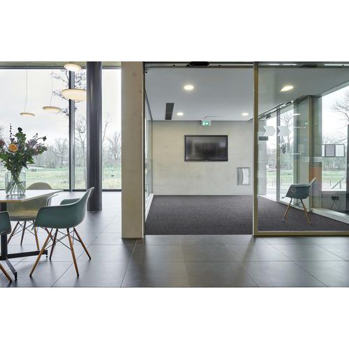 Tapete de entrada absorvente em rolo Delta Hydro TX. Tecnologia que oferece uma absorção rápida da humidade. Prático, utilização interior/exterior abrigado, resistente ao desgaste. Limpeza fácil com aspirador, jato de alta pressão e injeção-extração. Evita todos os vestígios de solas húmidas, pisos escorregadios e riscos de queda.