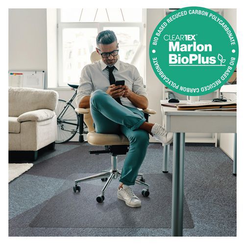 Com uma resistência ao impactos duas vezes superior ao PVC, o policarbonato BioPlus oferece uma excelente proteção a longo prazo dos revestimentos de pavimentos contra o desgaste e os danos permanentes causados por rodas de cadeiras.