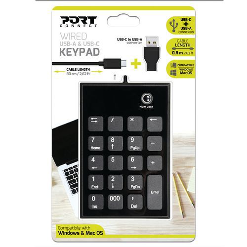 | Nome do artigo | Teclado numérico com fios USB type C – Port connect, Tipo de dispositivo: Teclado, Sem fios: não |