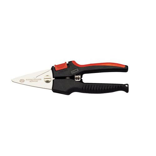 | Nome do artigo | Tesoura corta-tudo, Comp.: 190 mm, Haste material: Bimaterial, Peso: 120 g, Lâminas material: Inox |