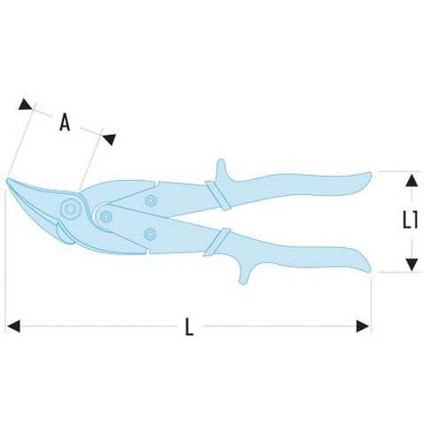 Tesoura do tipo aviação, Lâminas comp.: 255 mm, Comp.: 255 mm, Peso: 400 g, Modelo: Corte à direita