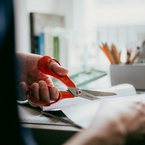 Tesoura Fiskars Classic universal, versão especial para esquerdinos. Design invertido para um ajuste confortável e natural. Corte de longa duração, graças às lâminas em aço inoxidável de alta resistência (57 HRC). Corte perfeito, com afiação de precisão a 60° para resultados nítidos. Higiene e robustez: articulação patenteada, esterilizável a 121 °C. Versatilidade extrema, ideal para tecidos, caixas de cartão, plásticos, metal leve e muito mais.