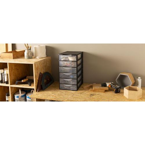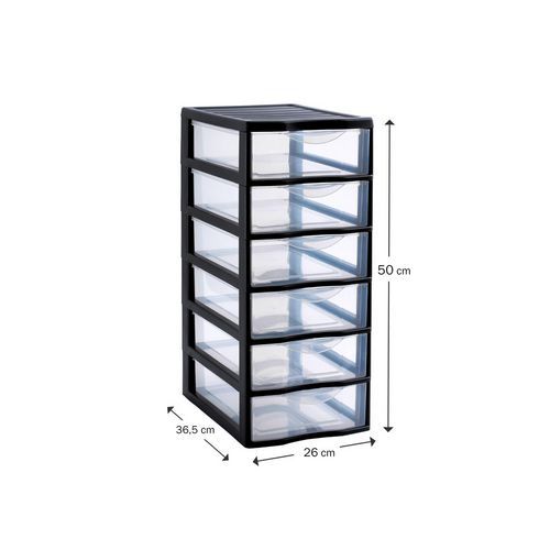 | Nome do artigo | Torre arrumação em plástico A4 Orgamix com 6 gavetas – preto – Sundis, Lombada larg.: 26 cm |