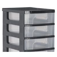Torre de arrumação montada sobre 4 rodízios para uma maneabilidade máxima.  Gavetas transparentes para melhor visibilidade do conteúdo.  Herméticas para uma proteção máxima contra a poeira.  Contorno com zonas com relevos dos lados para uma etiquetagem fácil.         Fabricado no UK