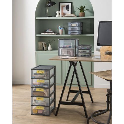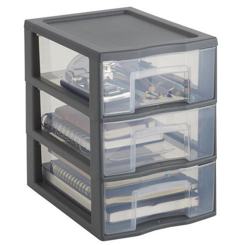 40% de plástico reciclado. Facilmente empilhável. Gavetas com batentes antiqueda. Parte superior com relevo, para a colocação de pequenos objetos. Pega de preensão ergonómica em cada gaveta. Gaveta de arrumação XL: 38,5 x 37 x 14 cm.