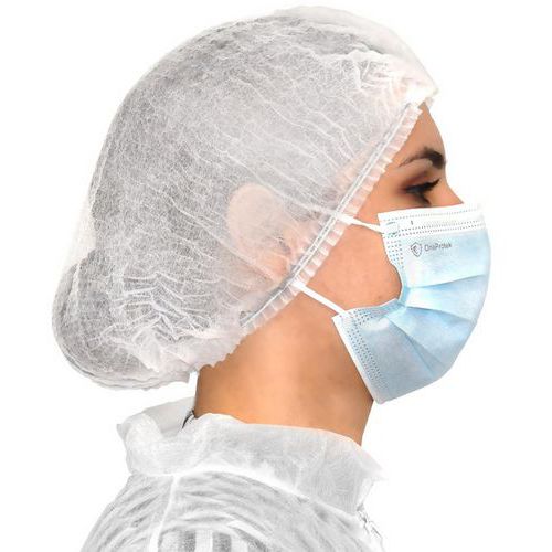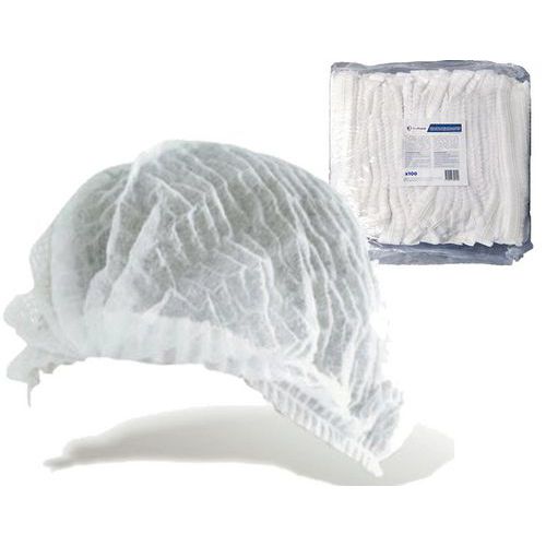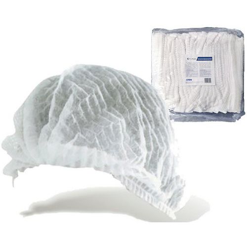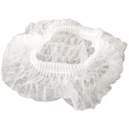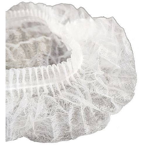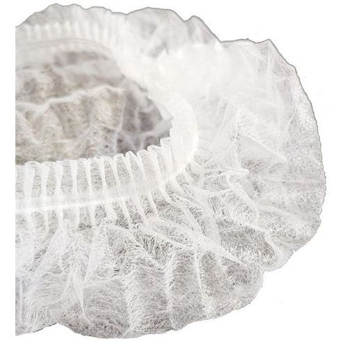 - Touca redonda branca para o cabelo em polipropileno não tecido e sem látex.
