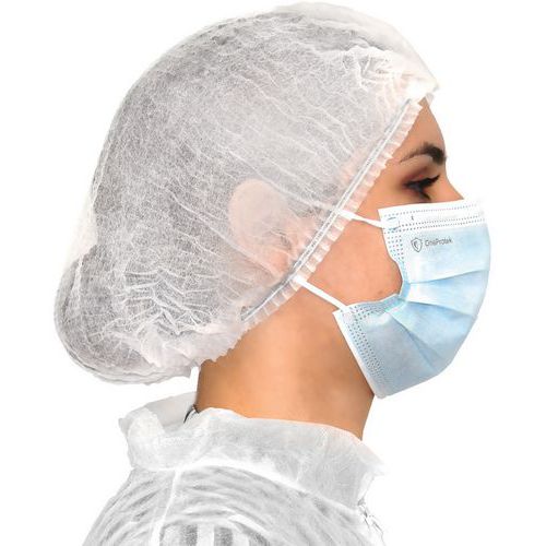 - Não esterilizada, a touca é de utilização única e deve ser eliminada após cada utilização.