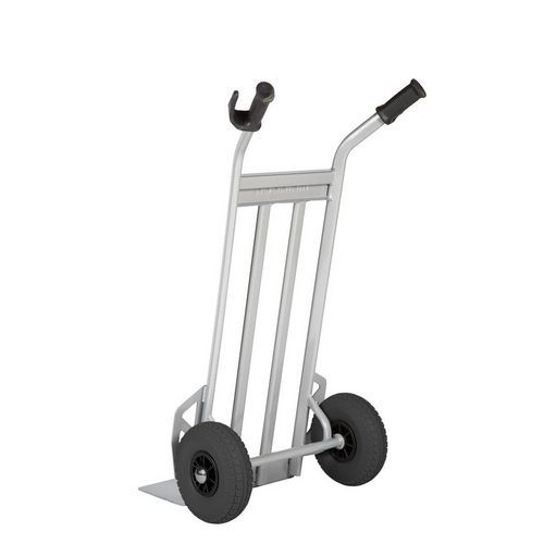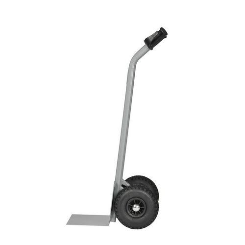 | Nome do artigo | Transportador em aço com plataforma elevada – rodas pneumáticas – capacidade de 350 kg, Capacidade: 350 kg |
