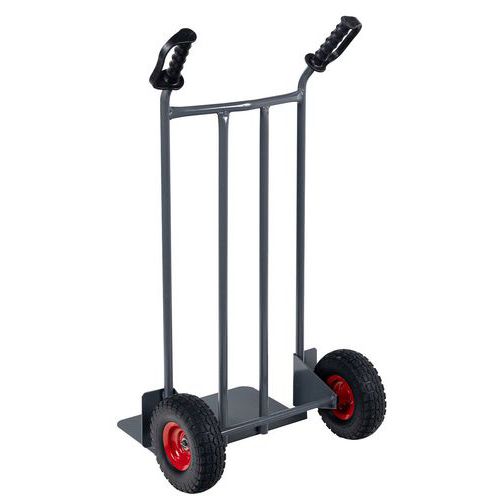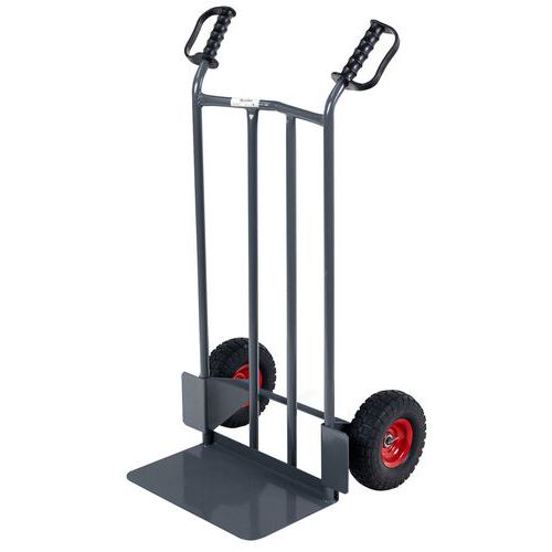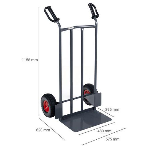 | Nome do artigo | Transportador em aço de 250 kg com aba fixa – Rodas antifuros, Capacidade: 250 kg, Altura total: 1158 mm |