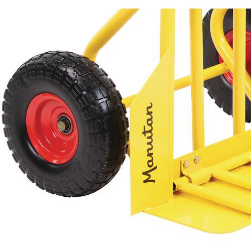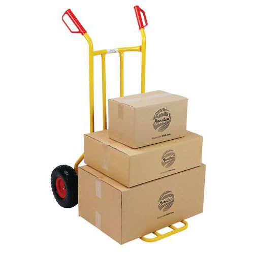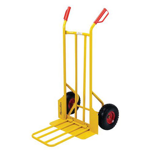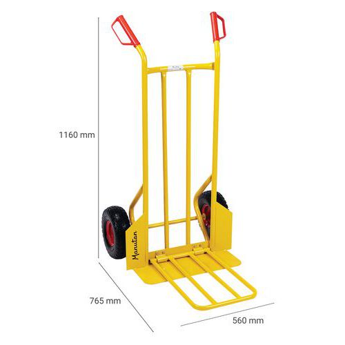 | Nome do artigo | Transportador em aço de 250 kg com aba mista – Rodas antifuros, Capacidade: 250 kg, Altura total: 1160 mm |