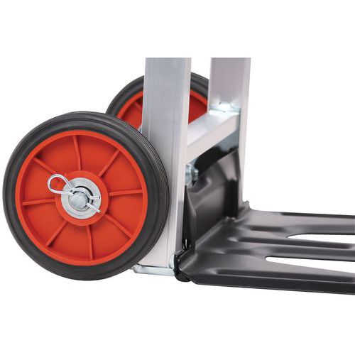 | Nome do artigo | Transportador em alumínio – Rodas em borracha – Capacidade de 90 kg, Capacidade: 90 kg, Roda piso: Borracha |