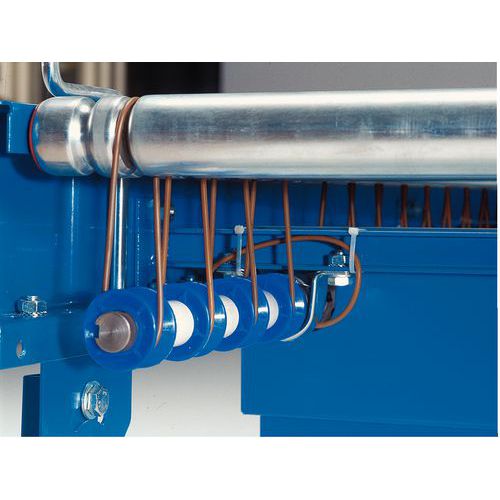 Transportador acumulador motorizado RCLA, comando por correias e rolos com 400 mm de comprimento. Circuito modular com partes retas e curvas. Transportador com quadro robusto. Acabamento tinta epóxi antichoques. Segurança absoluta das cargas. Garantia do cliente : 3 anos