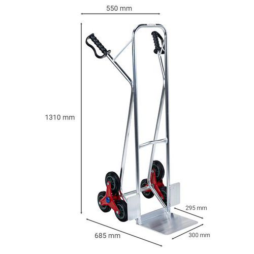 | Nome do artigo | Transportador para escadas em alumínio com 3 rodas em estrela de 150 kg, Material: Alumínio |