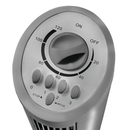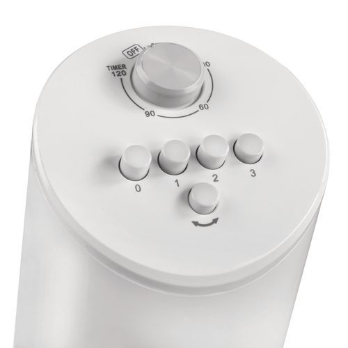 Ventilador de coluna com temporizador programável. Proporciona uma ventilação potente, mantendo a eficiência energética. Coluna de design compacto e elegante. 3 velocidades de ventilação, adapta-se a todas as necessidades. Oscilação de 45°.