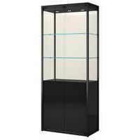 Vitrina de exposição com arrumação e iluminação LED. Estrutura robusta e resistente. Vidro temperado de elevada qualidade em todas as faces (incluindo portas e prateleiras). Portas rebatíveis com fechadura de segurança. Vitrina entregue desmontada.