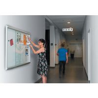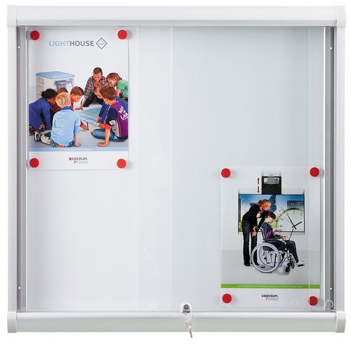 Vitrina de exposição para espaços interiores Natura com portas corrediças que não ocupam espaço, evitando qualquer risco de incómodo, impacto ou bloqueio. Perfeita para locais movimentados onde cada centímetro conta. Elevada capacidade de exposição (6 a 27 folhas A4). Quer seja para uma exibição restrita ou uma comunicação mais densa, a vitrina adapta-se a todas as necessidades: escolas, escritórios, salas de receção, condomínios, oficinas...