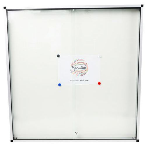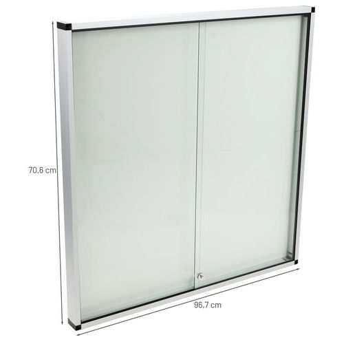 Vitrina de exposição interior robusta, segura e leve. Superfície magnética em aço lacado para afixar os documentos com relevo magnético. Porta corrediça bloqueável e transparente que oferece uma excelente visibilidade do material afixado. Vitrina em vidro reforçado com 5 mm de espessura para maior segurança. Bloqueável e fornecida com 2 chaves.