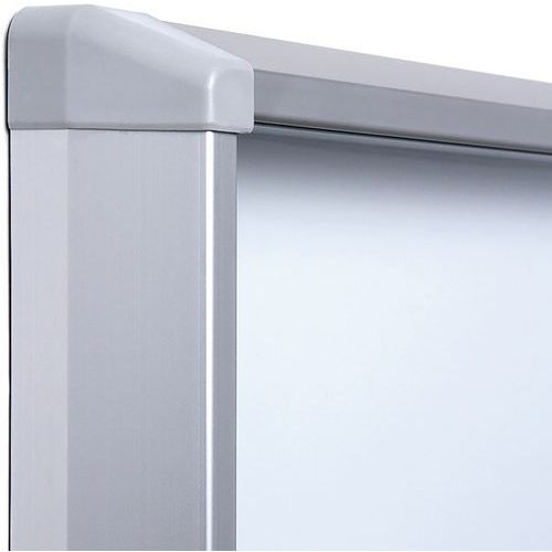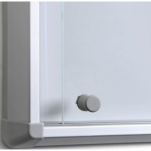 Vitrina de interior com fundo magnético. Segurança ideal – cantos arredondados moldados por injeção, portas corrediças em vidro e espessura mínima. Ideal para corredores de interior e a exibição de instruções de evacuação em caso de emergência. Gravável e magnética – fundo em metal de boa qualidade. Profundidade interna de 30 mm. Certificação B1 de resistência ao fogo (EN 13501 – 1 Classe C).