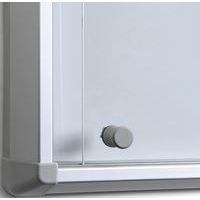 Vitrina de interior com fundo magnético. Segurança ideal – cantos arredondados moldados por injeção, portas corrediças em vidro e espessura mínima. Ideal para corredores de interior e a exibição de instruções de evacuação em caso de emergência. Gravável e magnética – fundo em metal de boa qualidade. Profundidade interna de 30 mm. Certificação B1 de resistência ao fogo (EN 13501 – 1 Classe C).